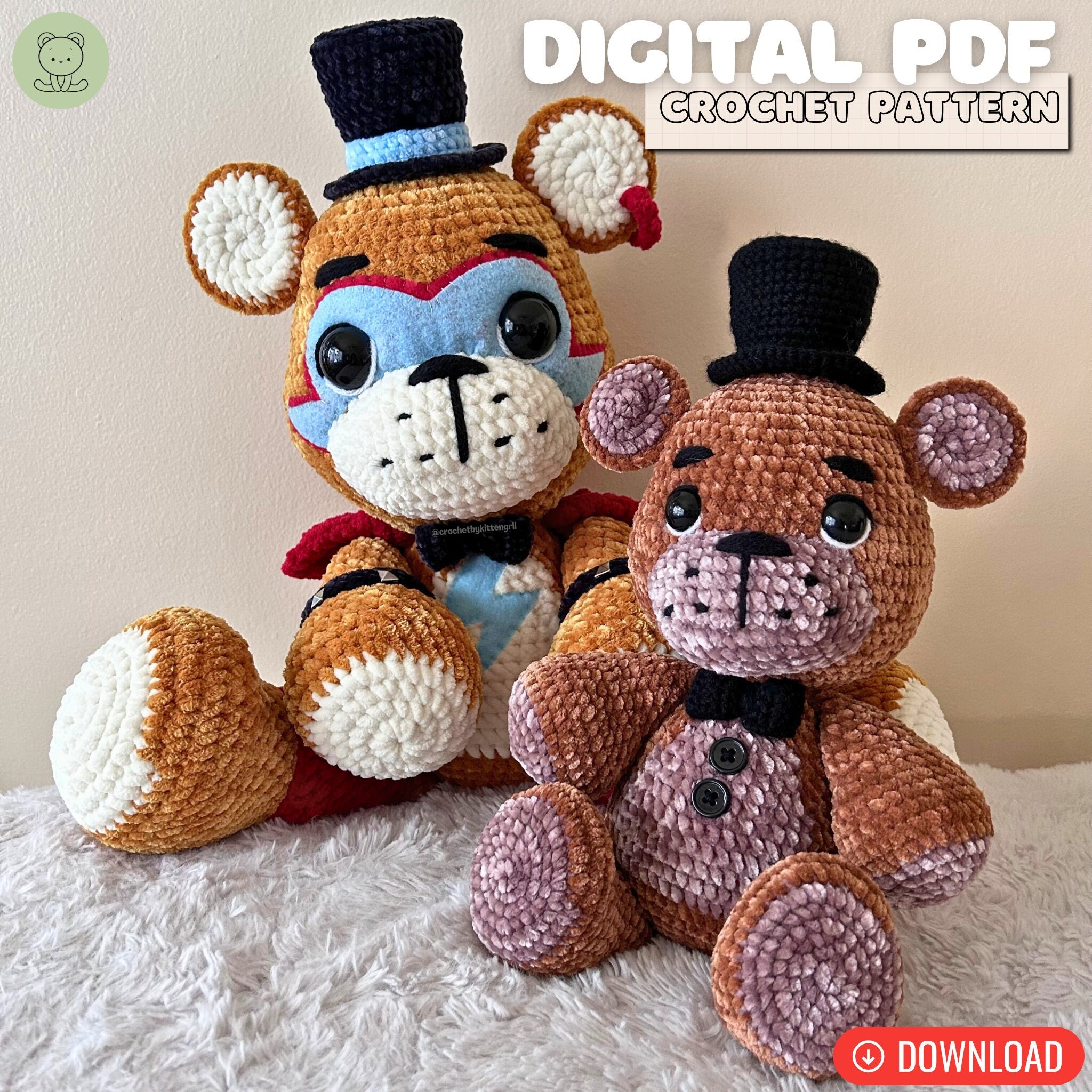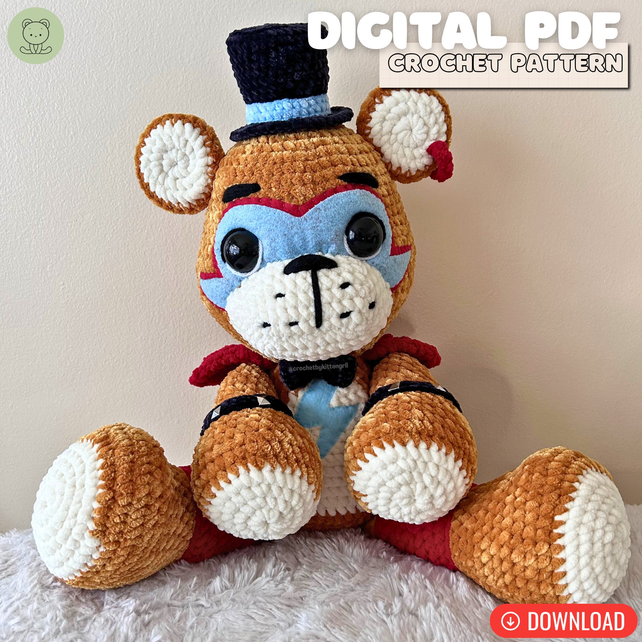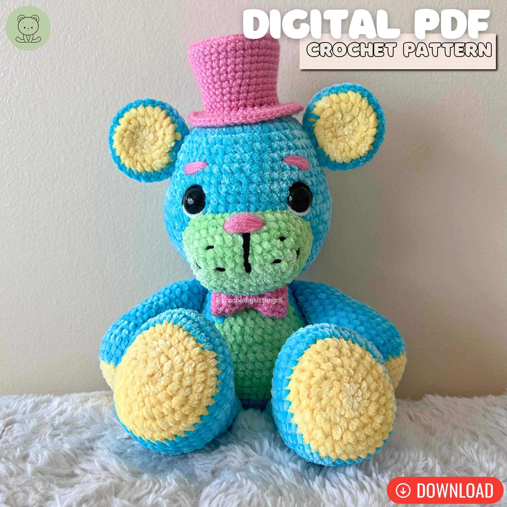This is a 28 page PDF pattern that includes detailed instructions on how to make your own Top Hat Teddy and Rockstar Top Hat Teddy with many step by step photo references. Top Hat Teddy is an advanced beginner friendly pattern, but the additional details for Rockstar Top Hat Teddy are sewing intensive, and more suitable for intermediate crocheters; however, there are detailed photos to help any courageous beginners!