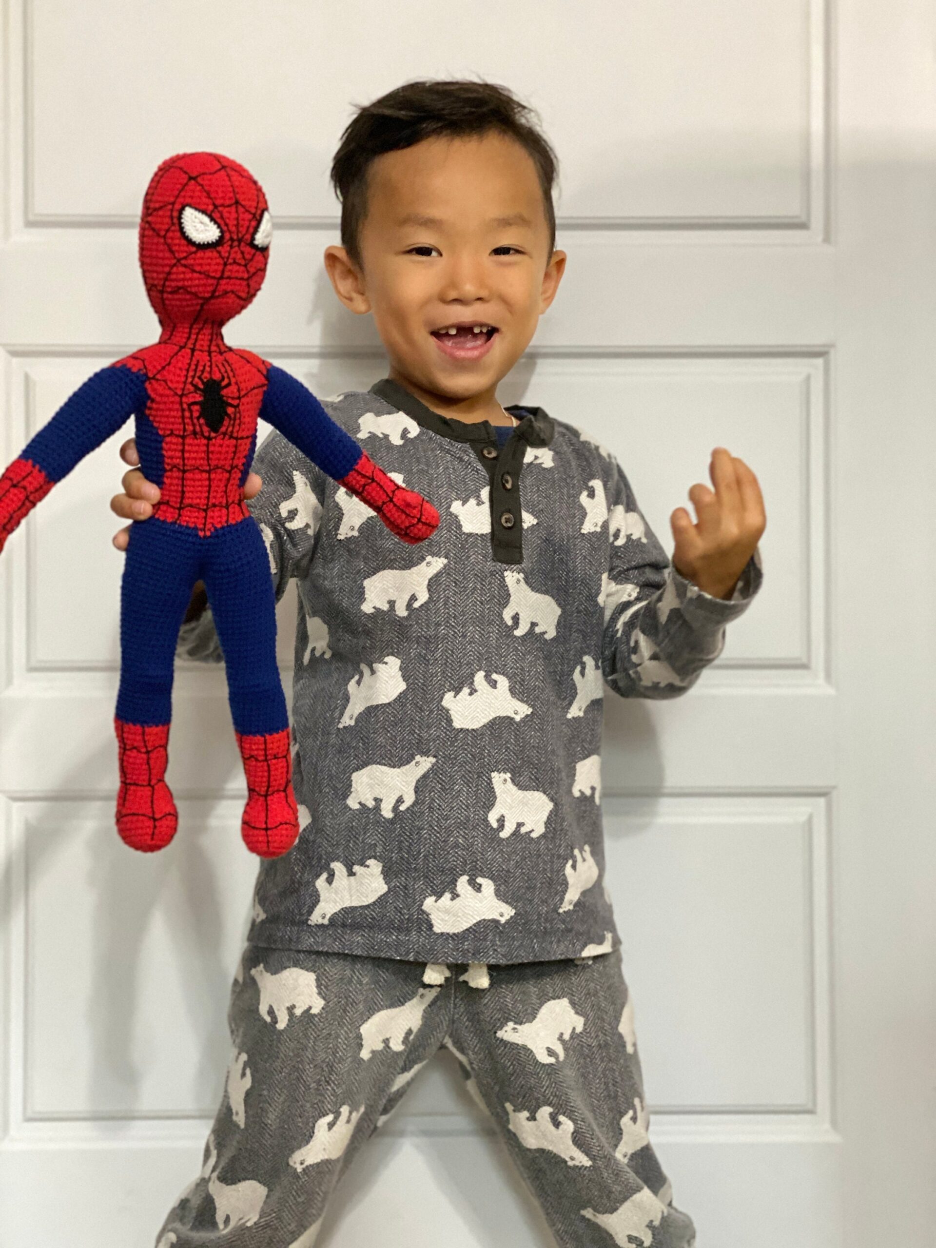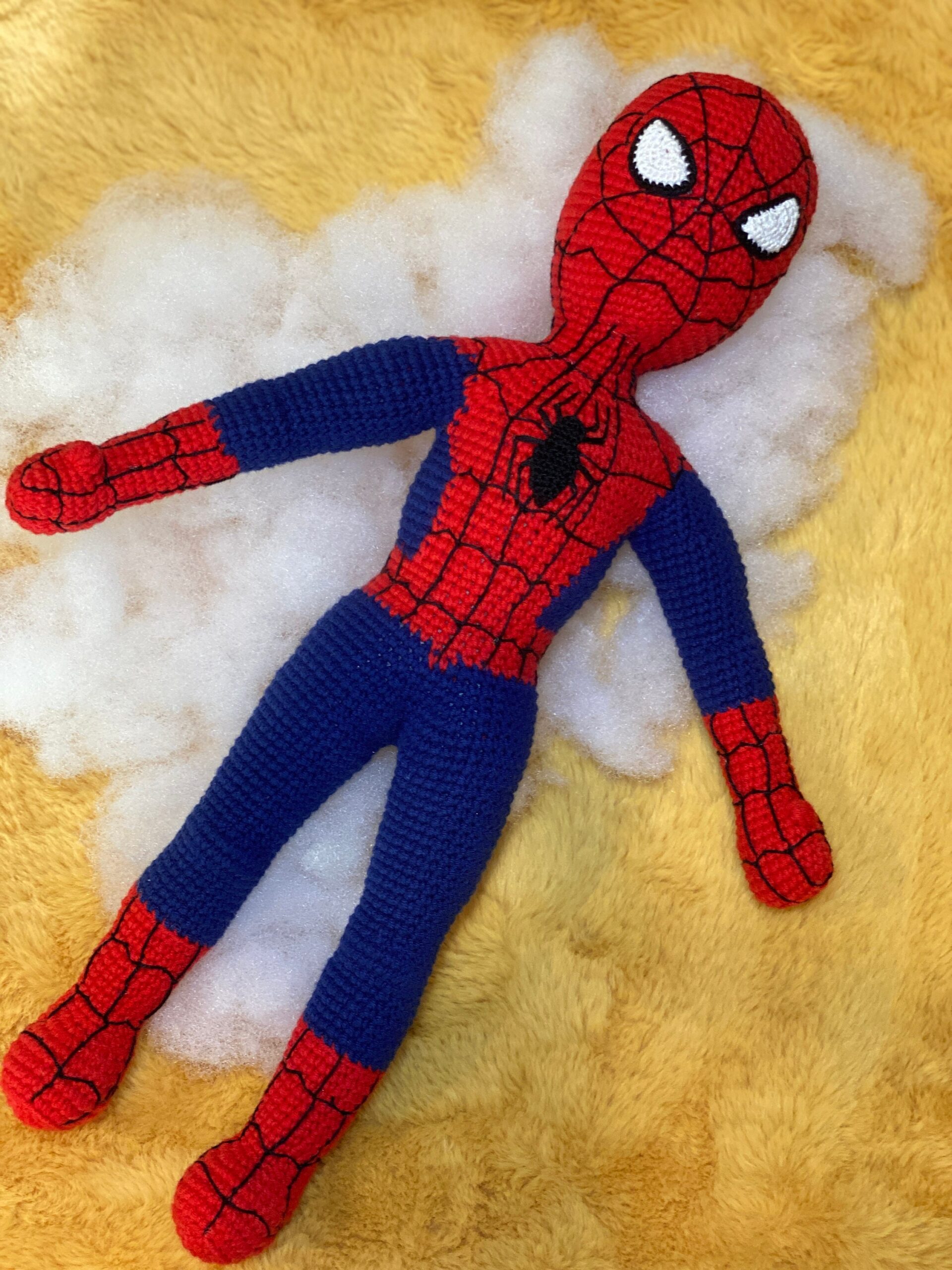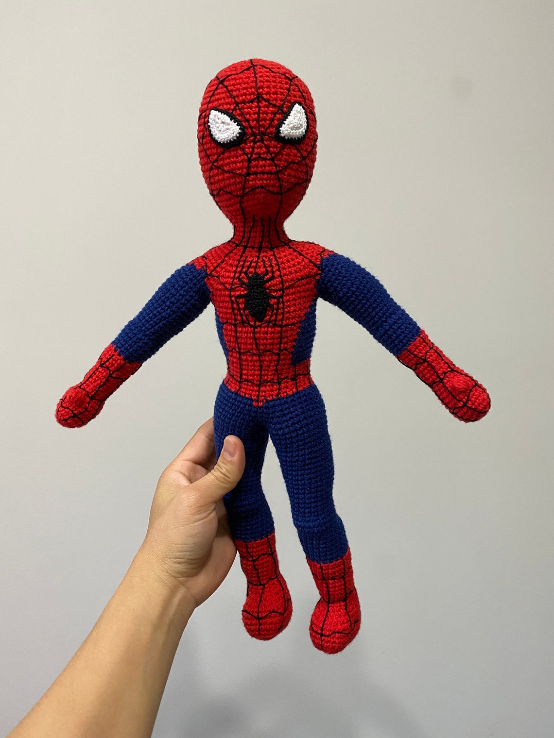 This version of Spiderman, I did not use a wire frame, just stuffed with soft fiber, it is totally safe for children, even for a baby.