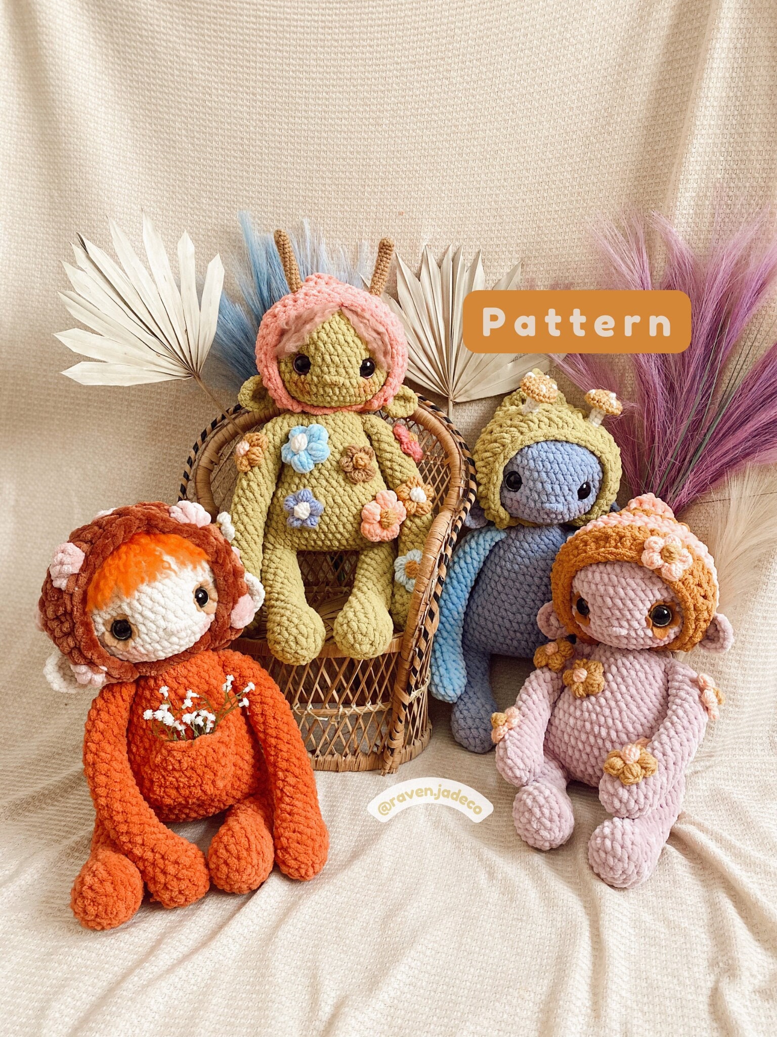 This listing is for an extensive PDF file which contains full instructions for crocheting and finishing of the whimsy folks.