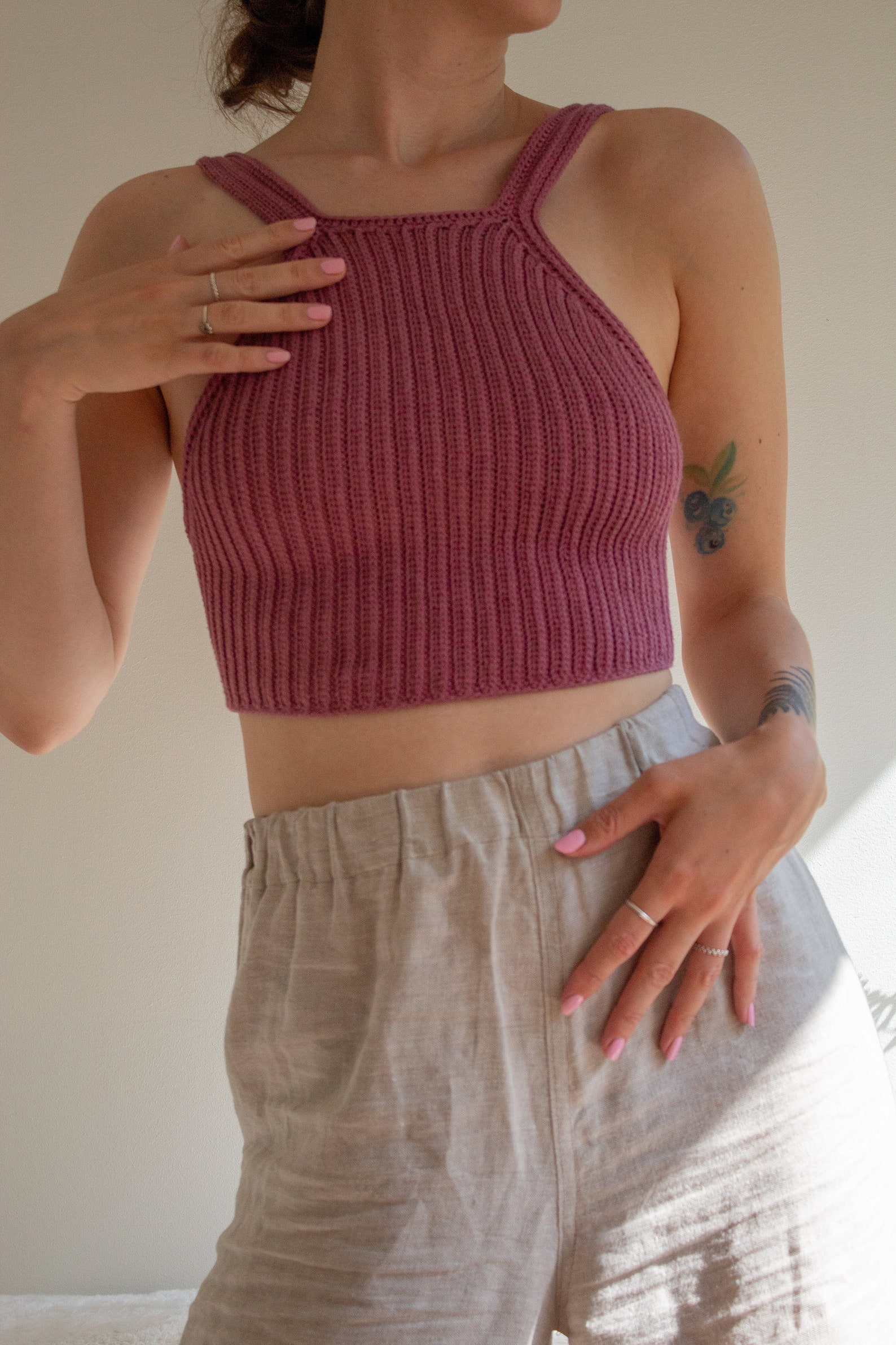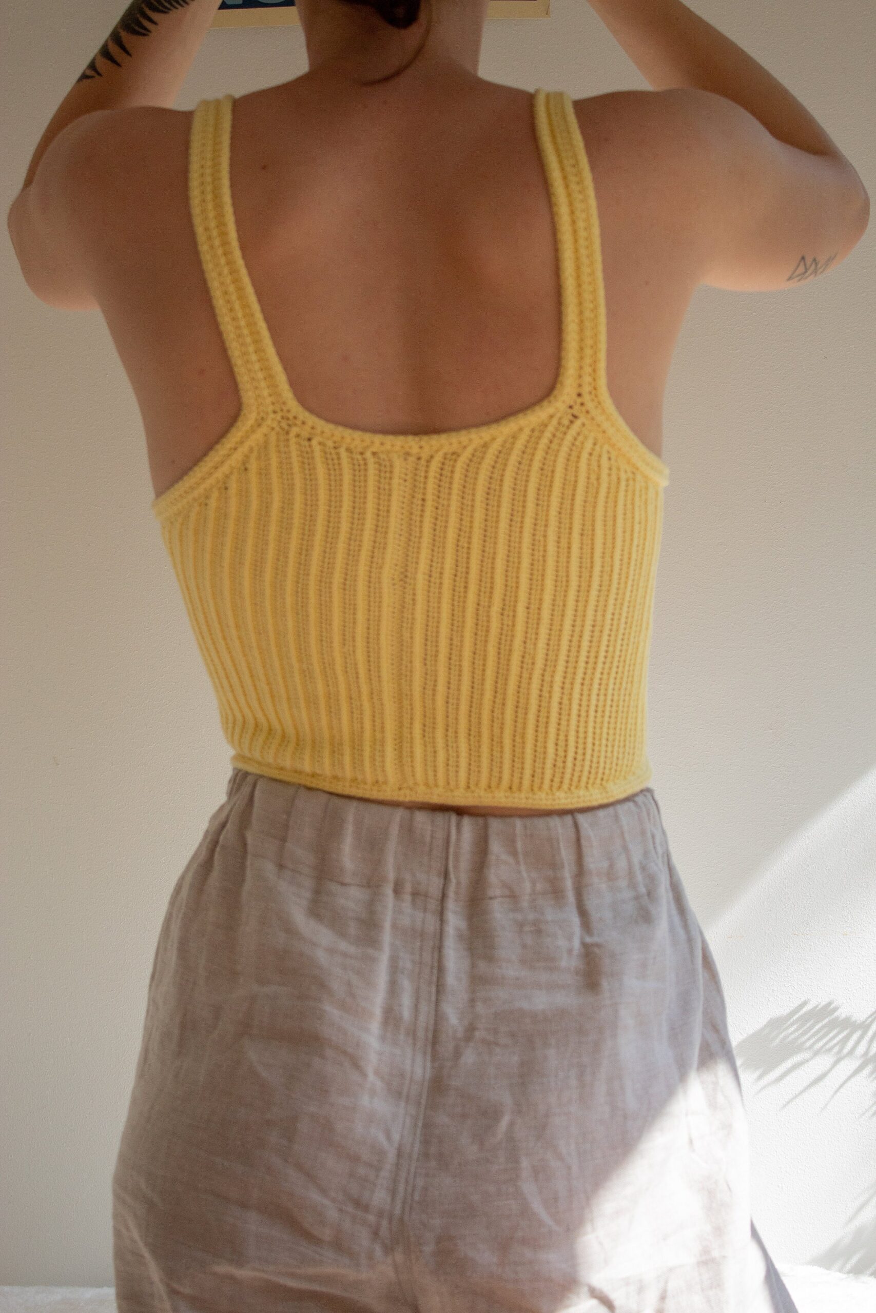 This is an intermediate level crochet pattern (digital PDF!!). It uses a stitch combination of half double crochets and yarn over slip stitches, and it is worked vertically starting at the center back. There are three different versions of the top: A, B and C, all with identical fronts but different backs. It can be made in one solid color or multiple colors, you choose! I made one top over two days (size S) where I crocheted almost continuously, so it works up pretty fast!